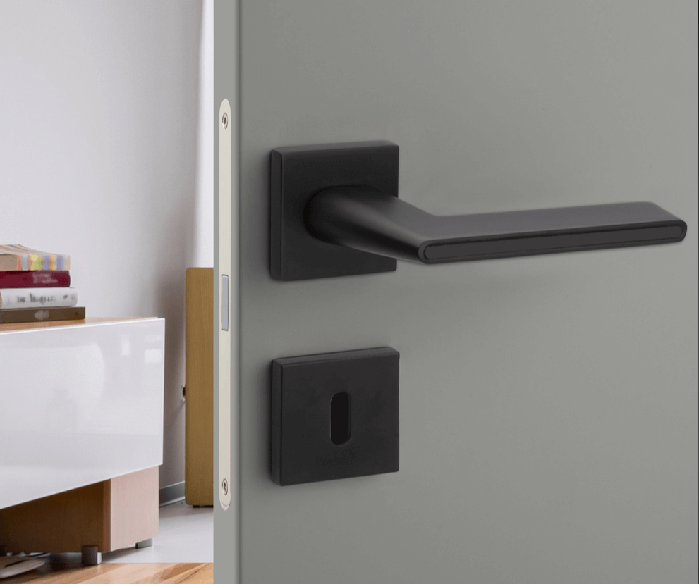 Χερούλι πόρτας ζεύγος ροζέτα μαύρο Ματ Κ802-03