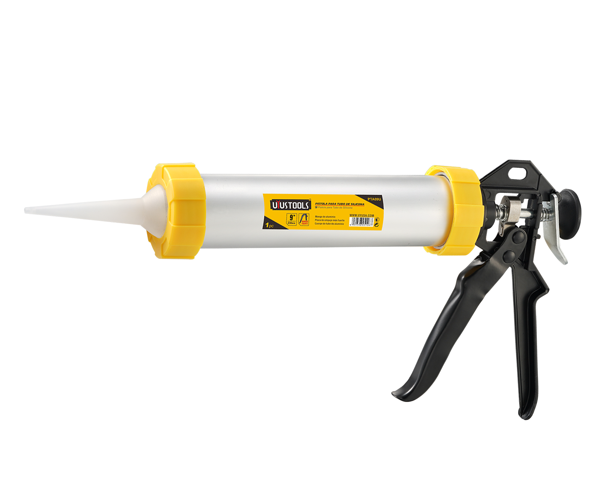 Πιστόλι σιλικόνης κλειστού τύπου κατασκευασμένο από αλουμίνιο συμβατό με σιλικόνες σε συσκευασία λουκάνικου και σφραγιστικά υλικά. Με σπειρωτά καπάκια από πλαστικό και λαβή αλουμινίου με σκανδάλη ταχείας απελευθέρωσης. Κατάλληλο για επαγγελματική χρήση.